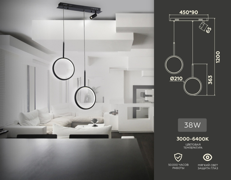 Изделие FL5274 от российского бренда Ambrella light относится к коллекции Comfort Line и отлично подойдет для установки на потолок в гостиной, оформленной в стиле хай-тек. Подвесной светодиодный светильник Ambrella light Comfort Line FL5274 с круглыми плафонами осветит помещение площадью 10 кв.м. холодным светом. Осветительный элемент встроен в конструкцию и не требует приобретения дополнительных лампочек. Основным материалом для производства используется металл и может использоваться для натяжного потолка. В комплект поставки входит пульт дистанционного управления. Преимущественно представляется в цвете Черный.