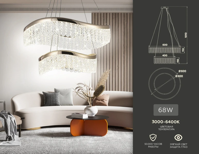 Изделие TR49728 от российского бренда Ambrella light относится к коллекции Traditional и отлично подойдет для установки на потолок в гостиной, оформленной в стиле модерн. Подвесной светодиодный светильник Ambrella light Traditional TR49728 с овальными плафонами осветит помещение площадью 20 кв. м. холодным светом. Осветительный элемент встроен в конструкцию и не требует приобретения дополнительных лампочек. Основными материалами для производства используется хрусталь и металл и может использоваться для натяжного потолка. Преимущественно представляется в цвете Золотой и Прозрачный.