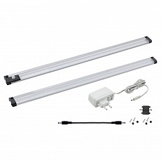 Комплект накладных светильников имеет встроенный светодиодный LED модуль мощностью 10 Вт . Плафоны состоят из таких материалов, как полимер. Материал арматуры: алюминий.