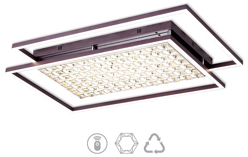 Изделие FA115 от российского бренда Ambrella light относится к коллекции Modern Acrylic и отлично подойдет для установки на низкий потолок больших залов, оформленных в стиле модерн. Осветительный элемент встроен в конструкцию и не требует приобретения дополнительных лампочек. Основными материалами для производства используется хрусталь, металл и пластик и может использоваться для натяжного потолка. В комплект поставки входит пульт дистанционного управления. Преимущественно представляется в цвете Коричневый и Прозрачный.