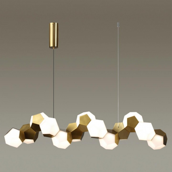 Линия Bingo - светодиодные светильники с плафонами в виде правильного многогранника будут смотреться свежо и оригинально в современном интерьере, где важна динамичность. Светильники сделают любой интерьер живым и интересным. В серии есть подвесной светильник продолговатой формы, который можно использовать над столом, также потолочный, похожий на игрушку-головоломку, который будет отлично смотреться в детской и очень необычный настенный светильник с подвесным креплением. Основание и декор выполнены в цвете матовое золото и полированный хром.