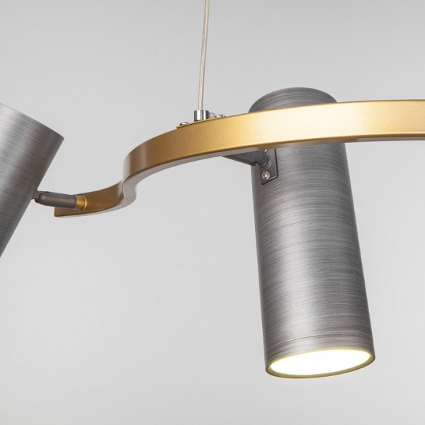 Изделие 90103/5 матовый серый/золото от российского бренда Eurosvet относится к коллекции Spacer и отлично подойдет для установки на потолок в гостиной, оформленной в стиле модерн. Осветительный элемент встроен в конструкцию и не требует приобретения дополнительных лампочек. Основным материалом для производства используется металл и может использоваться для натяжного потолка. Преимущественно представляется в цвете Серебряный и Золотой.