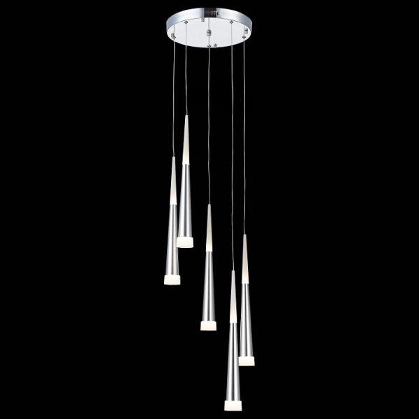 Изделие SLE200113-05 от итальянского бренда Evoluce относится к коллекции Orpelo и отлично подойдет для установки на потолок кухни, оформленной в стиле хай-тек. Подвесная светодиодная люстра Evoluce Orpelo SLE200113-05 с плафонами-конусами осветит помещение площадью 12 кв.м. холодным светом. Осветительный элемент встроен в конструкцию и не требует приобретения дополнительных лампочек. Основными материалами для производства используется пластик, металл и акрил и может использоваться для натяжного потолка. Преимущественно представляется в цвете Хромовый, Серебристо-стальной и Серебристый.