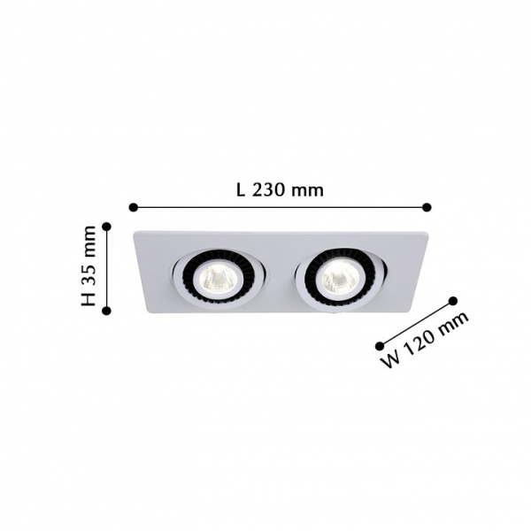 Встраиваемый светильник 2417-2U из коллекции Cardine немецкого бренда Favourite для установки в гостиную, кабинет, коридор, прихожую или спальню. Основание светильника белое матовое из металла. Модель оснащена светодиодными лампами, мощностью 5W. Цветовая температура лампы 4000K (белый). Крепление к потолку на прижимных скобах. Габариты светильника: глубина – 35 мм, длина – 230 мм, ширина – 120 мм. Размер врезного отверстия – 190x95 мм.