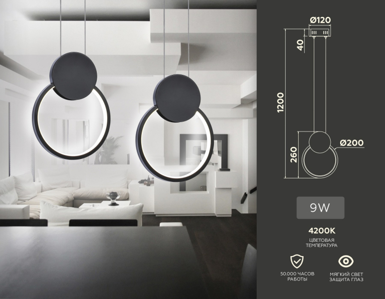 Изделие FL5252 от российского бренда Ambrella light относится к коллекции Comfort Line и отлично подойдет для установки на потолок в гостиной, оформленной в стиле хай-тек. Подвесной светодиодный светильник Ambrella light Comfort Line FL5252 с круглыми плафонами осветит помещение площадью 8 кв. м. холодным светом. Осветительный элемент встроен в конструкцию и не требует приобретения дополнительных лампочек. Основным материалом для производства используется металл и может использоваться для натяжного потолка. Преимущественно представляется в цвете Черный.