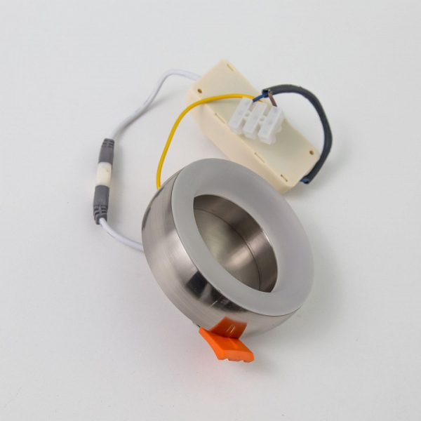 Встраиваемый светильник CLD007N1 из коллекции Болла датского бренда Citilux для установки в гостиную, кабинет, коридор, прихожую или спальню. Основание светильника хром матовое из металла. Модель оснащена светодиодной лампой мощностью 9W. Цветовая температура лампы 4000K (белый). Крепление к потолку на прижимных скобах. Габариты светильника: глубина – 20 мм, диаметр – 96 мм, выступ – 33 мм, высота – 53 мм. Размер врезного отверстия – 80 мм.