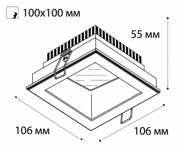 Встраиваемый светильник имеет встроенный светодиодный LED модуль мощностью 8 Вт . Материал арматуры: металл.