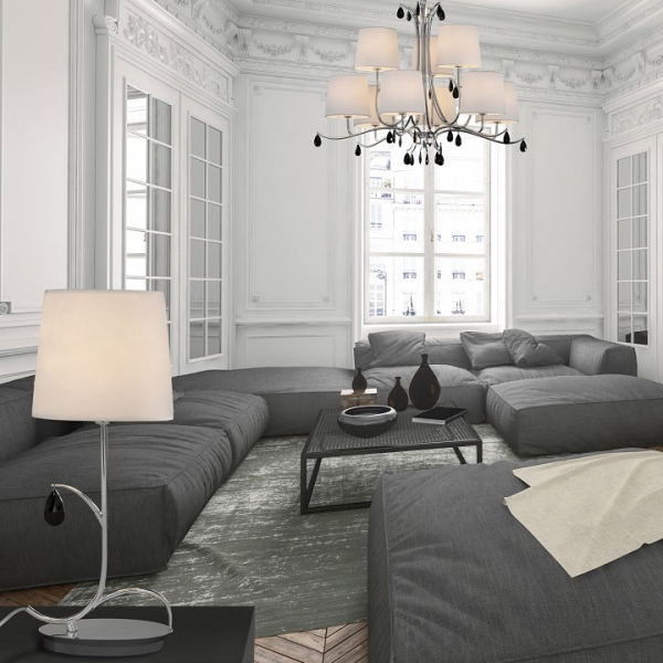 ANDREA - это обновленная классика. Широкий ассортимент коллекции сочетает в себе гладкие современные линии, привлекательные хрустальные детали и мягкий полупрозрачные абажуры. Светильники коллекции выпускается в отделке полированного хрома и античной латуни. Отполированные хромированные светильники сочетаются с черным кристаллами, создавая контраст и добавляя композиции смелости, в то время как античная латунь дополнена белыми кристаллами как более спокойная и нейтральная вариация коллекции. Регулируемые подвесные светильники варьируются от пышного двухъярусного, который способен осветить просторное пространство, до лаконичного светильника с тремя абажурами для комнаты поменьше. Вся линейка люстр может быть использована с соответствующими напольными, настольными и настенными светильниками ANDREA, чтобы объединить пространство и разнообразить его освещение. Коллекция разработана для декорирования интерьеров в стиле современной классики. придавая ощущение харизмы, но основываясь на традиционном освещение. Предметы коллекции создает теплую, но утонченную домашнюю атмосферу.