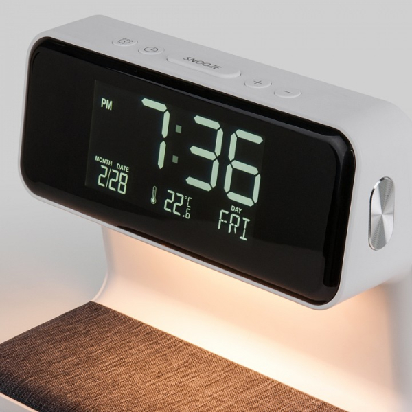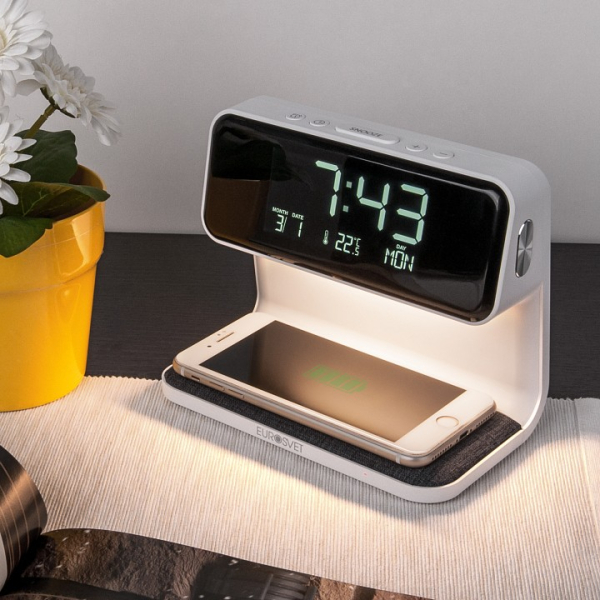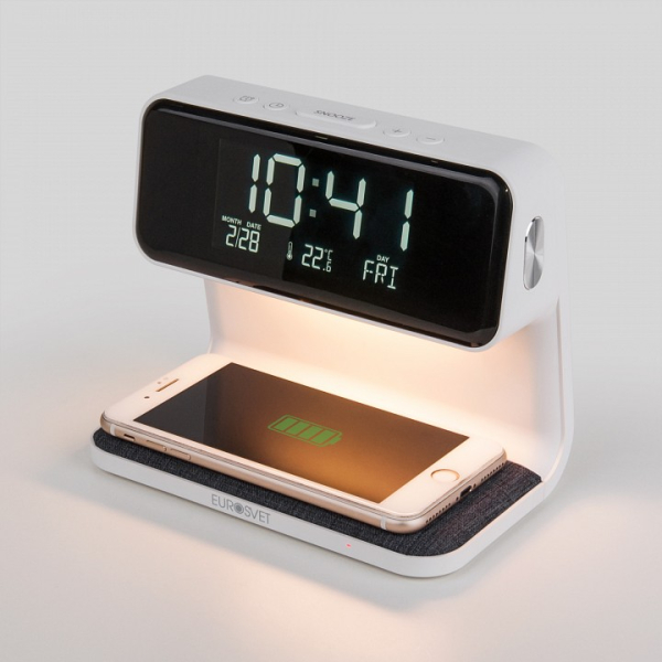будильник;беспроводное зарядное устройство для смартфонов;календарь;провод электропитания с вилкой без заземления;термометр;часы