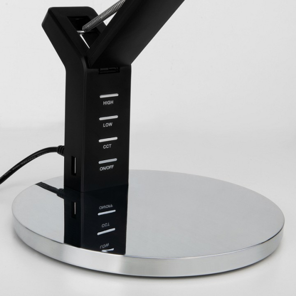 Изделие 80426/1 черный/серебро со встроенным выключателем от российского бренда Eurosvet относится к коллекции Slink и отлично подойдет для установки на стол офиса, оформленном в стиле минимализм. Осветительный элемент встроен в конструкцию и не требует приобретения дополнительных лампочек. Основным материалом для производства используется пластик. Преимущественно представляется в цвете Серебряный и Черный.