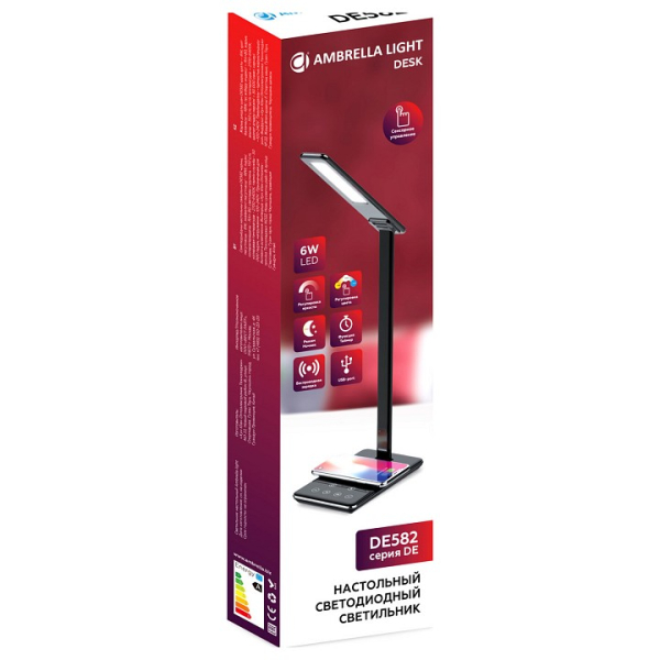 Изделие DE582 от российского бренда Ambrella light относится к коллекции Desk и отлично подойдет для установки на стол офиса, оформленном в стиле хай-тек. Осветительный элемент встроен в конструкцию и не требует приобретения дополнительных лампочек. Основным материалом для производства используется пластик. Преимущественно представляется в цвете Черный.