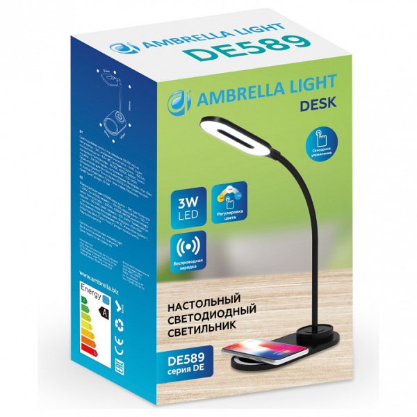 Изделие DE589 от российского бренда Ambrella light относится к коллекции Desk и отлично подойдет для установки на стол офиса, оформленном в стиле хай-тек. Осветительный элемент встроен в конструкцию и не требует приобретения дополнительных лампочек. Основным материалом для производства используется пластик. Преимущественно представляется в цвете Черный.