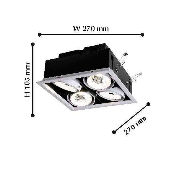 Встраиваемый светильник имеет встроенный светодиодный LED модуль мощностью 48 Вт . Материал арматуры: металл.