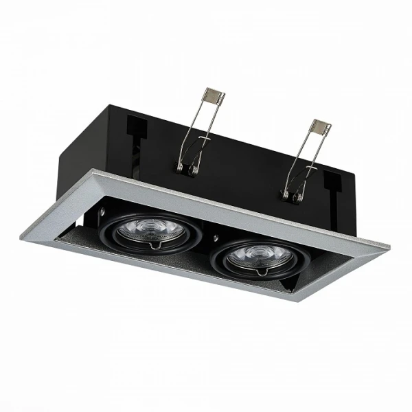Встраиваемый светильник ST250.148.02 из коллекции Hemi итальянского бренда ST-Luce для установки в гостиную, кабинет, коридор, прихожую или спальню. Основание светильника серое, черное матовое из металла. Модель оснащена лампами с цоколем 2xGU10, общей мощностью 100W. Крепление к потолку на прижимных скобах. Габариты светильника: глубина – 70 мм, длина – 245 мм, ширина – 126 мм. Размер врезного отверстия – 225x103 мм.