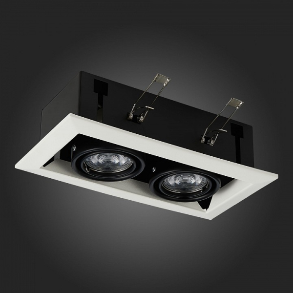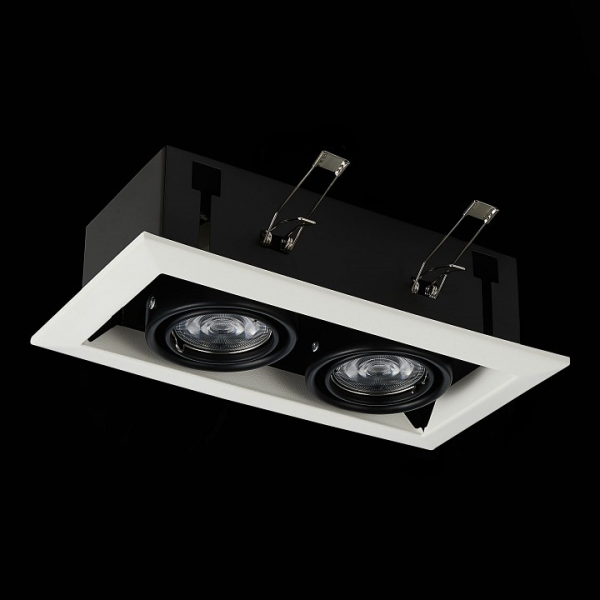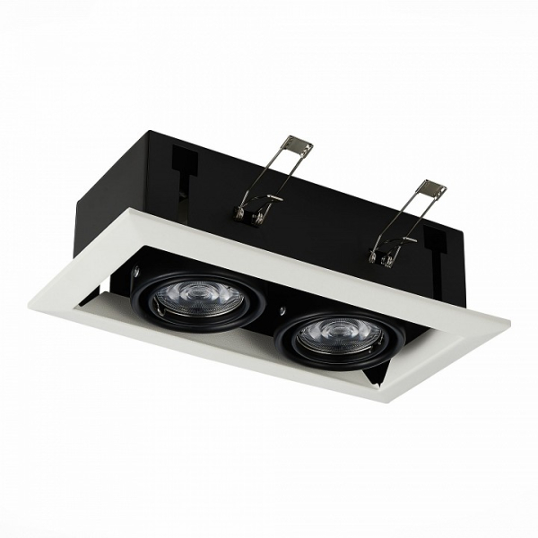 Встраиваемый светильник ST250.548.02 из коллекции Hemi итальянского бренда ST-Luce для установки в гостиную, кабинет, коридор, прихожую или спальню. Основание светильника белое, черное матовое из металла. Модель оснащена лампами с цоколем 2xGU10, общей мощностью 100W. Крепление к потолку на прижимных скобах. Габариты светильника: глубина – 70 мм, длина – 245 мм, ширина – 126 мм. Размер врезного отверстия – 225x103 мм.