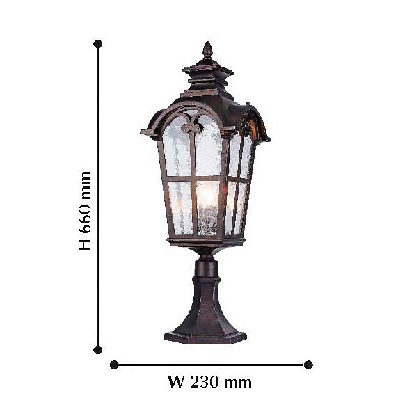 Изделие 2036-1T от немецкого бренда Favourite относится к коллекции Bristol. Уличный светильник Favourite Bristol 2036-1T с пирамидальными плафонами осветит помещение площадью 3.3 кв. м. Для устройства рекомендуется использовать лампы накаливания с цоколем E27 и мощностью 60 W. Основными материалами для производства используется стекло и металл. Преимущественно представляется в цвете Коричневый и Прозрачный.