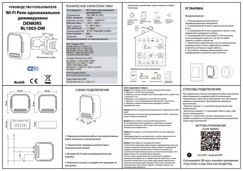 Контроллер-диммер Wi-Fi для смартфонов и планшетов Denkirs RL1000 RL1003-DM