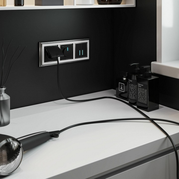 Выключатель двухклавишный с подсветкой без рамки Werkel черные W4520008