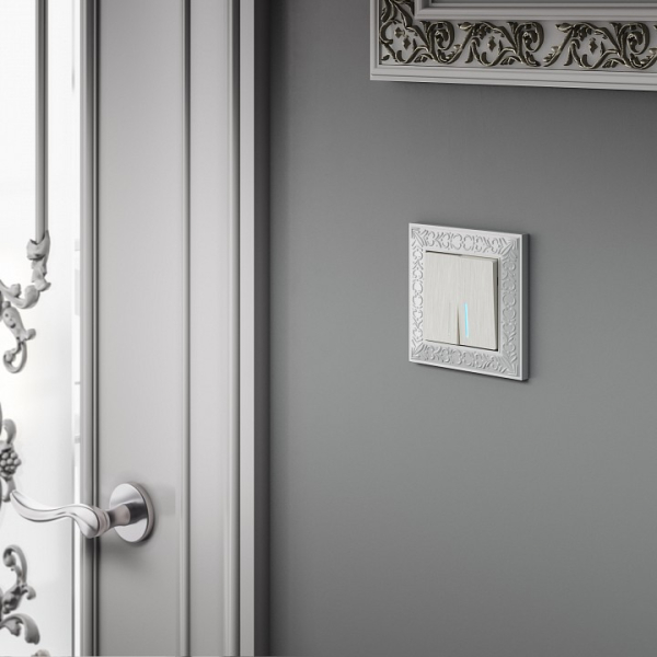 Выключатель проходной двухклавишный с подсветкой без рамки Werkel перламутровый рифленый W1122113